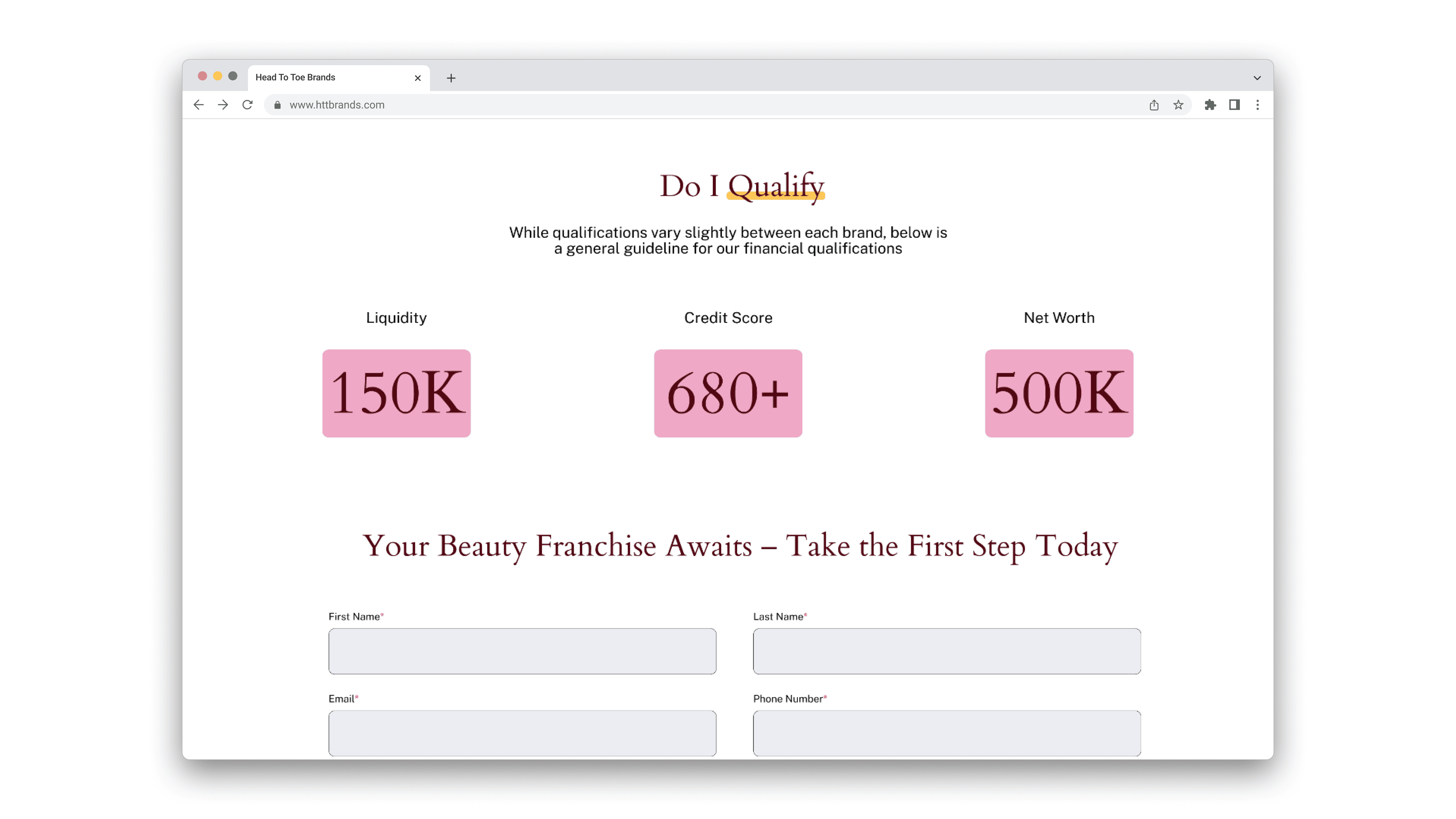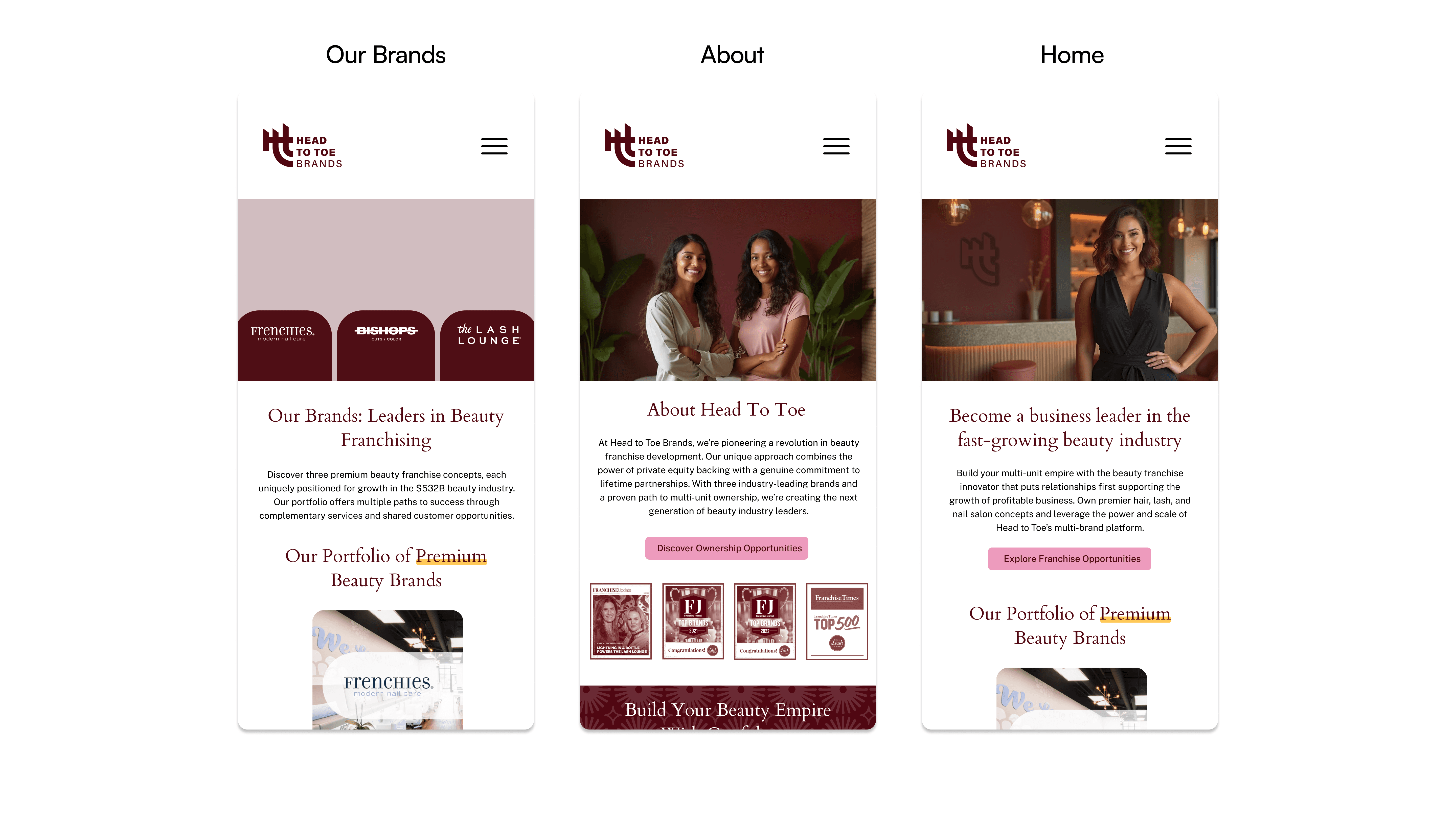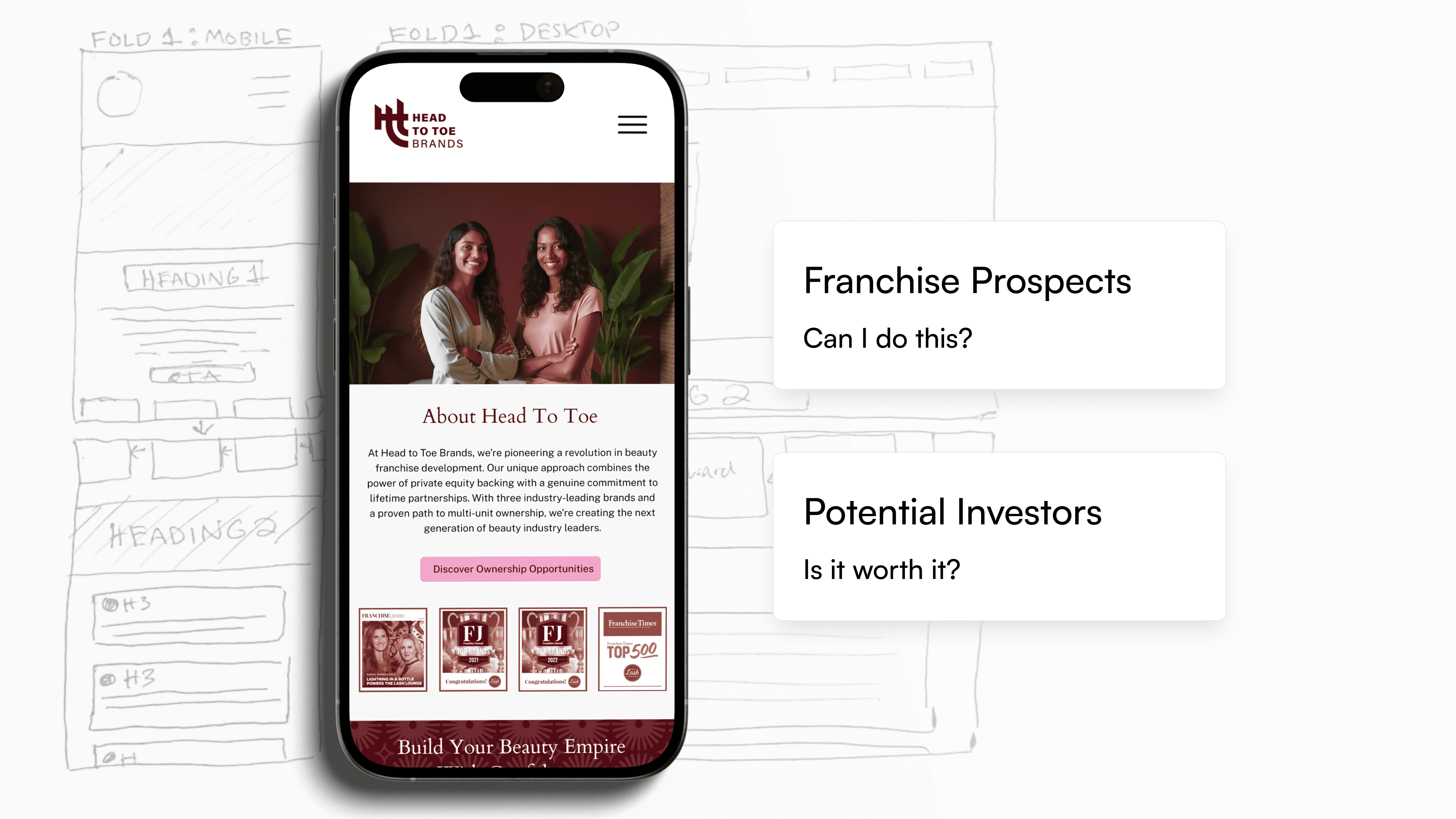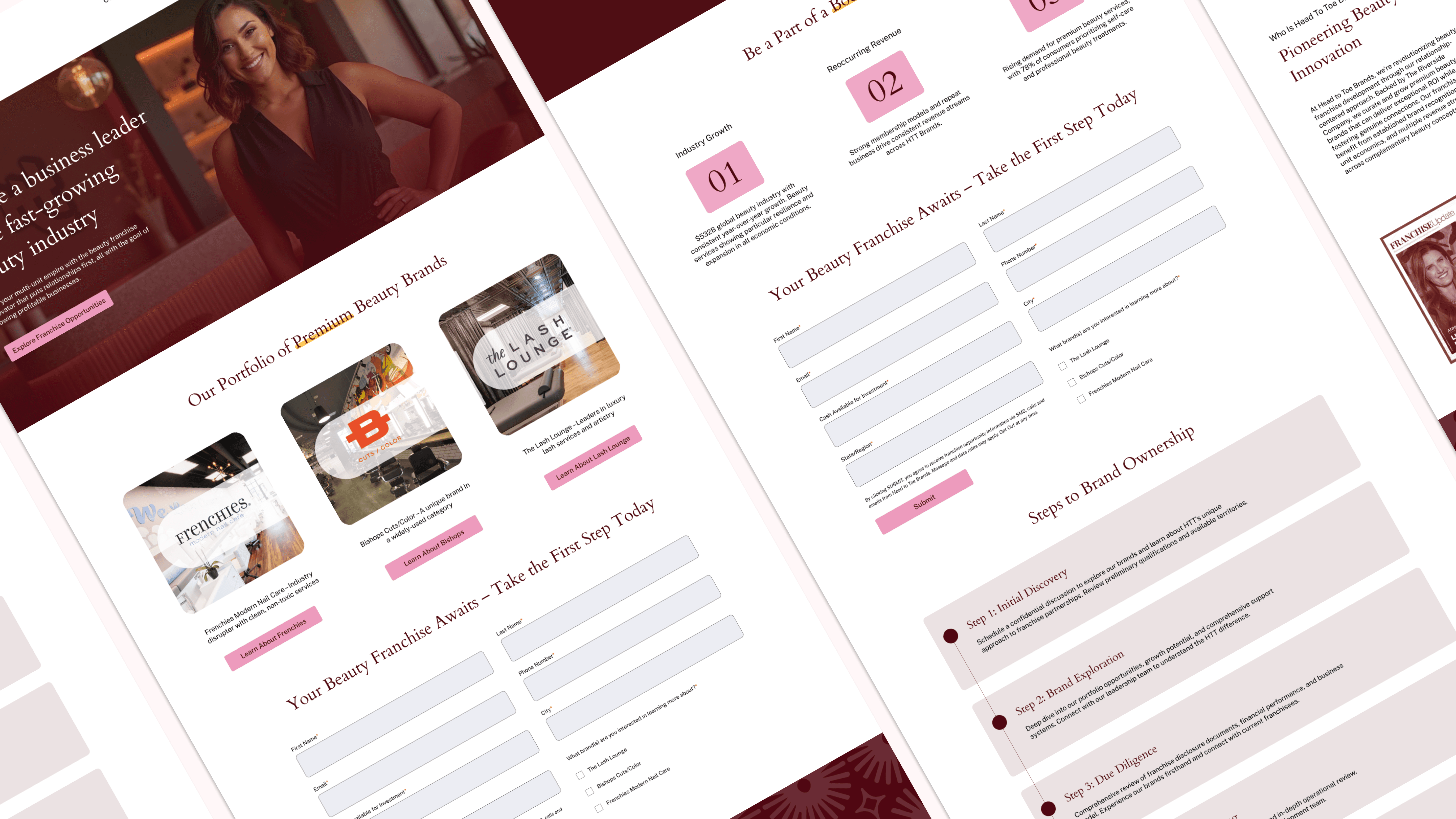 Designed a unified web experience for a multi-brand beauty portfolio, helping franchise prospects and investors understand, evaluate, and take action.